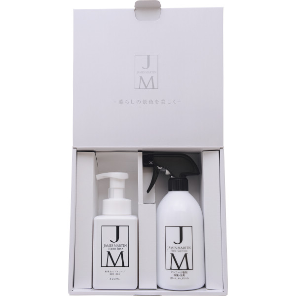 清潔さが求められる飲食業の現場から生まれた除菌洗浄製品のブランド「ジェームズマーティン」の食品成分のみで作られた安心安全なフレッシュサニタイザー(除菌・消臭用アルコール製剤)と、保湿性に優れた薬用泡ハンドソープの除菌のための必須アイテムのセットです。キッチンや化粧室に並べてお使いいただくのにオススメです。
