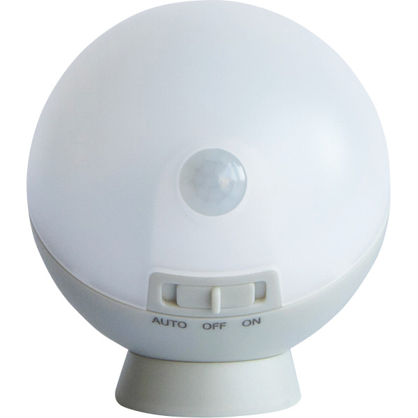 内容:明るさ50ルーメン(電球色)単4アルカリ乾電池3本使用(別売)探知範囲=100度・約3mモード切替=センサーモード約10秒、連続点灯屋内用