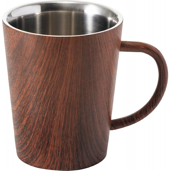 外側の木目調デザインと鏡面仕上げのうちがわのステンレス素材の光沢感、金属と木目のコントラストが落ち着いたドリンクタイムを演出します。