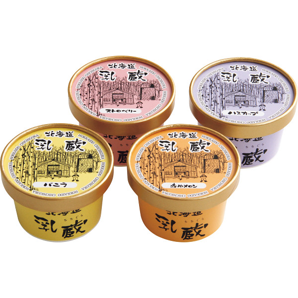 北海道産の牛乳を使用した4種類のアイスクリーム。人気のバニラにハスカップをはじめとした人気のフルーツ味をセットしました。