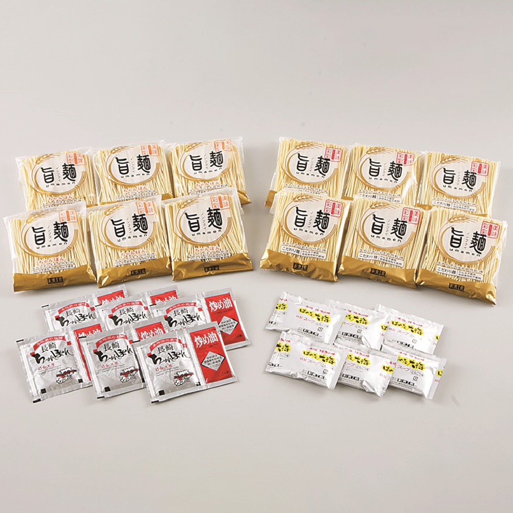 内容:ラーメン麺80g×6、博多豚肉骨スープ35g×6、ちゃんぽん麺80g×6、長崎ちゃんぽんスープ20g×6