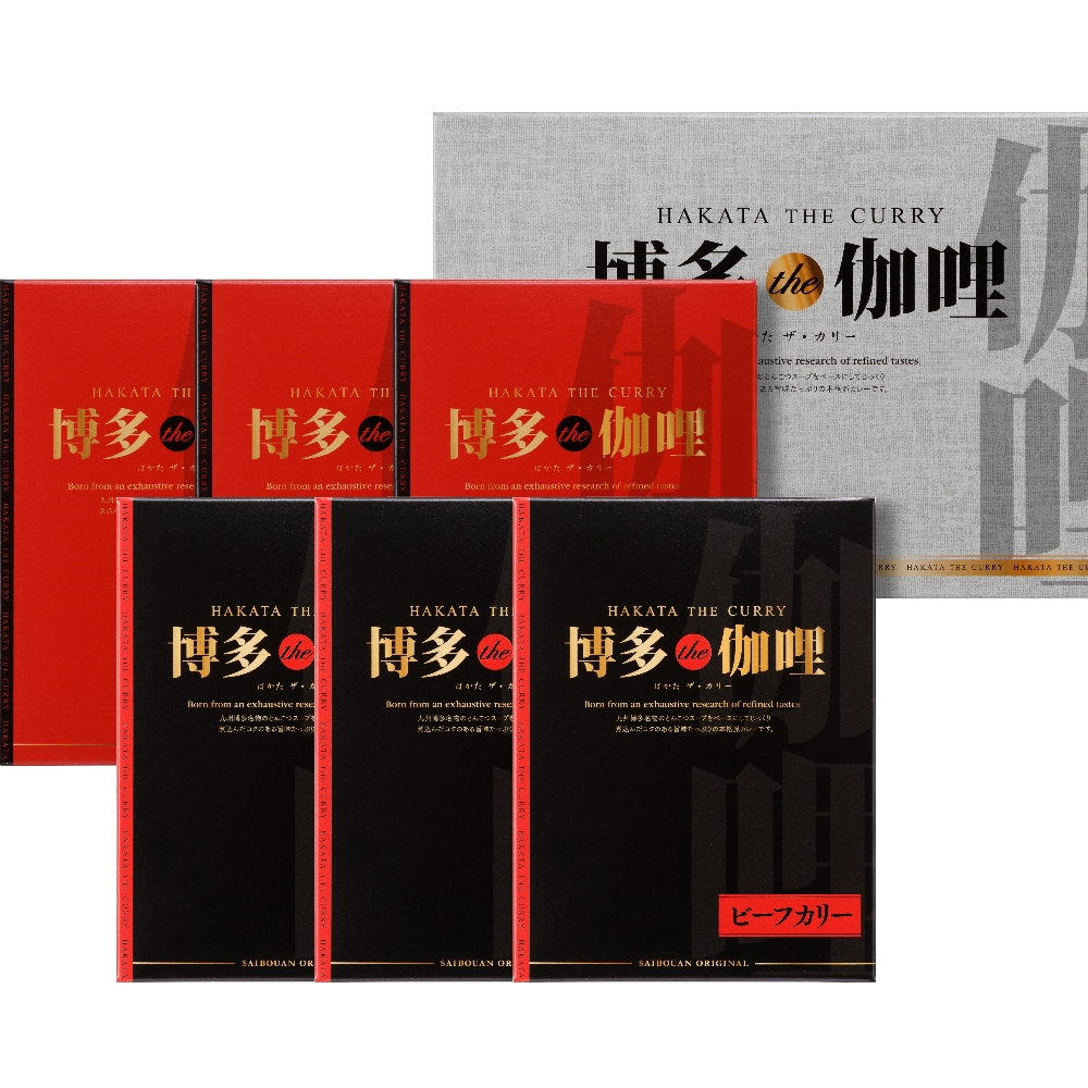 内容:博多the伽哩ビーフ200g×3個、博多the伽哩チキン200g×3個
