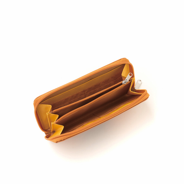 内容:札入れ×2、ファスナー式小銭入れ×1、カード入れ×8、内ポケット×2、背面ポケット×1、開閉=ファスナー式
