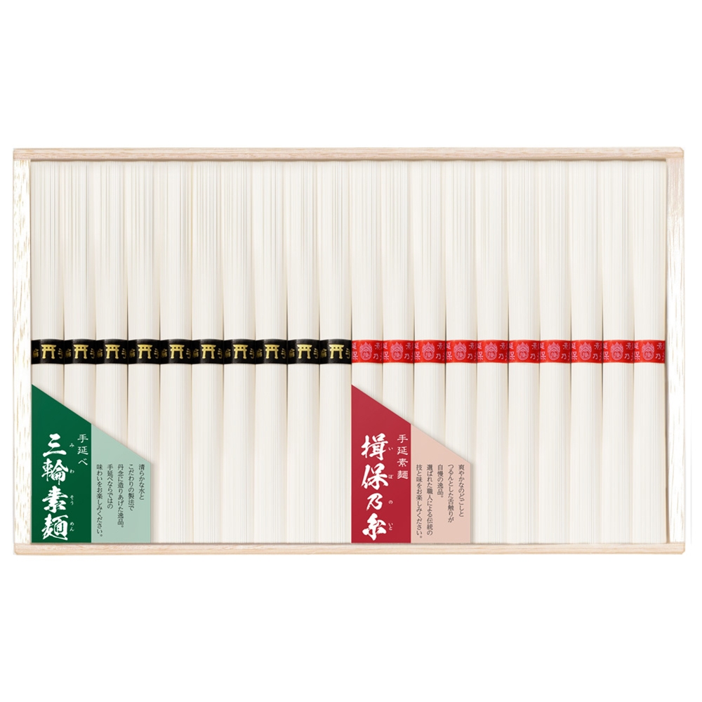 内容:揖保乃糸 上級50g×10束、三輪素麺50g×10束 (木箱入り)