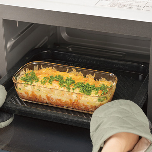フタをしたまま電子レンジ、フタを外してオーブン調理が可能です。