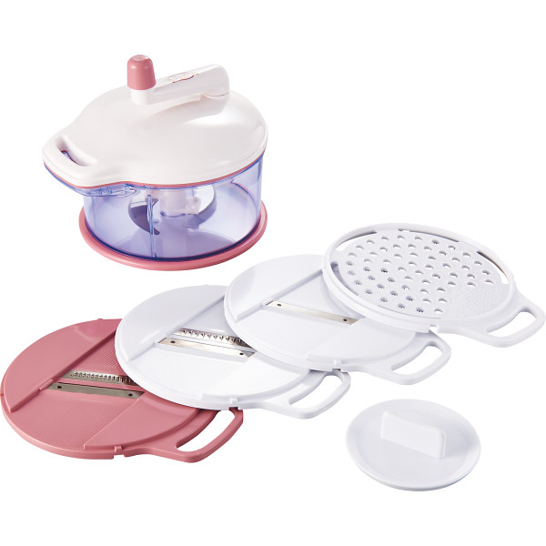 内容:みじん切り器・スライサー・おろし器・千切り・つま切り・安全ホルダー×各1