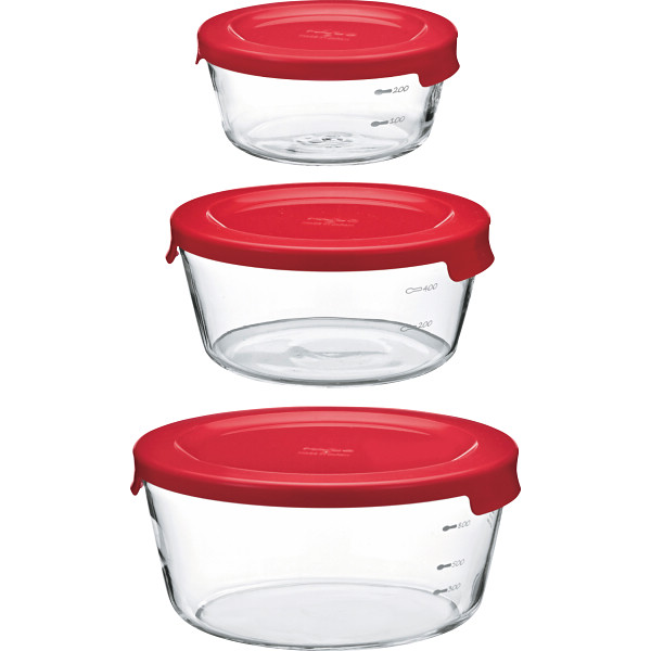 ハリオ 耐熱ガラス製保存容器 丸3個セット レッド