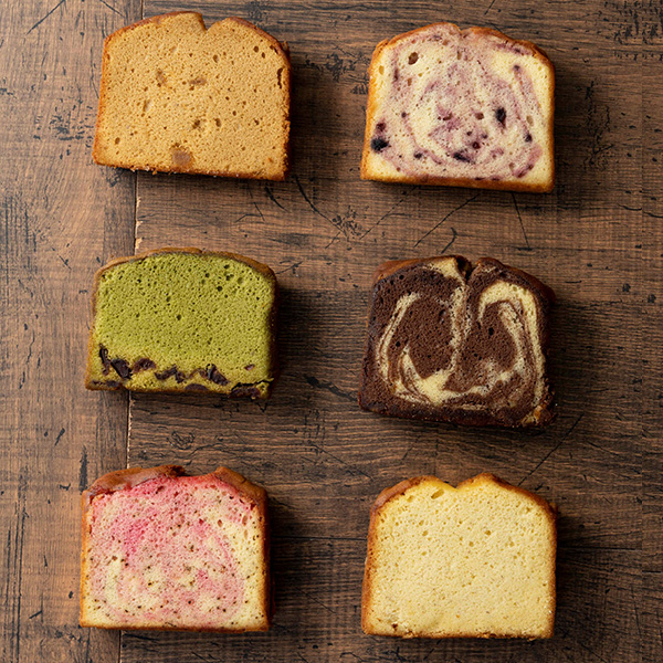 フルーツを混ぜ込んだ大きなしっとりパウンドケーキです。ずっしりとしたサイズ感ですが、ふんわり軽い食感で意外にぺろりと食べられます。朝食代わりやデザートにも。フルーツとフレーバーが組み合わさったそれぞれの味わいをお楽しみください。
