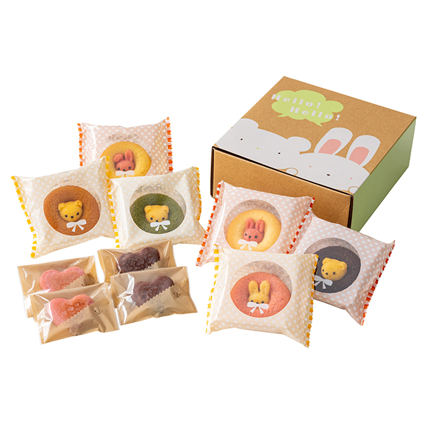 内容:りんごガレットクッキー×4個、アニマルドーナツ(うさぎイチゴ・うさぎプレーン・うさぎバナナ・くまチョコ・くま抹茶・くまキャラメル×各1個)