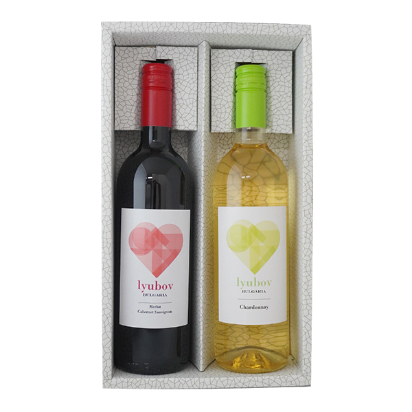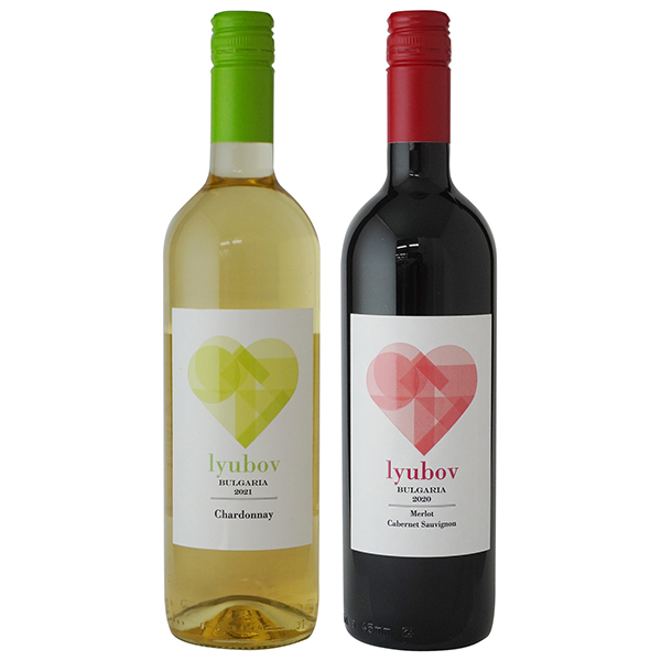 バレンタインや母の日にもオススメのハートラベルワインセット!恵まれた気候風土のブルガリア・ストゥルマ渓谷の厳選ぶどうを丹念に醸造し、オーク樽で熟成したワインの赤白セット。リュボフとはブルガリア語で「愛」。愛されるワインを目指して造っています。