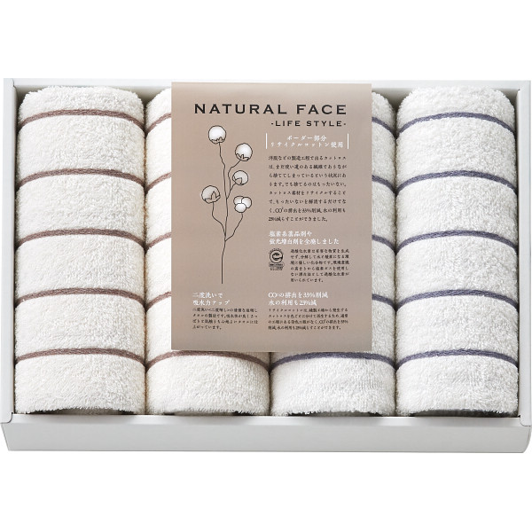 ナチュラルフェイス ボーダーフェイスタオル4枚セット