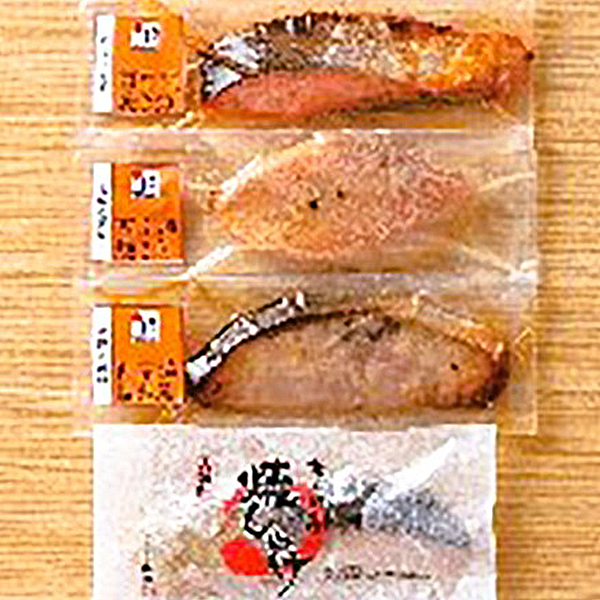 内容:西京漬焼魚(紅鮭・赤魚・ぶり各60g×1)、焼鮭60g×1