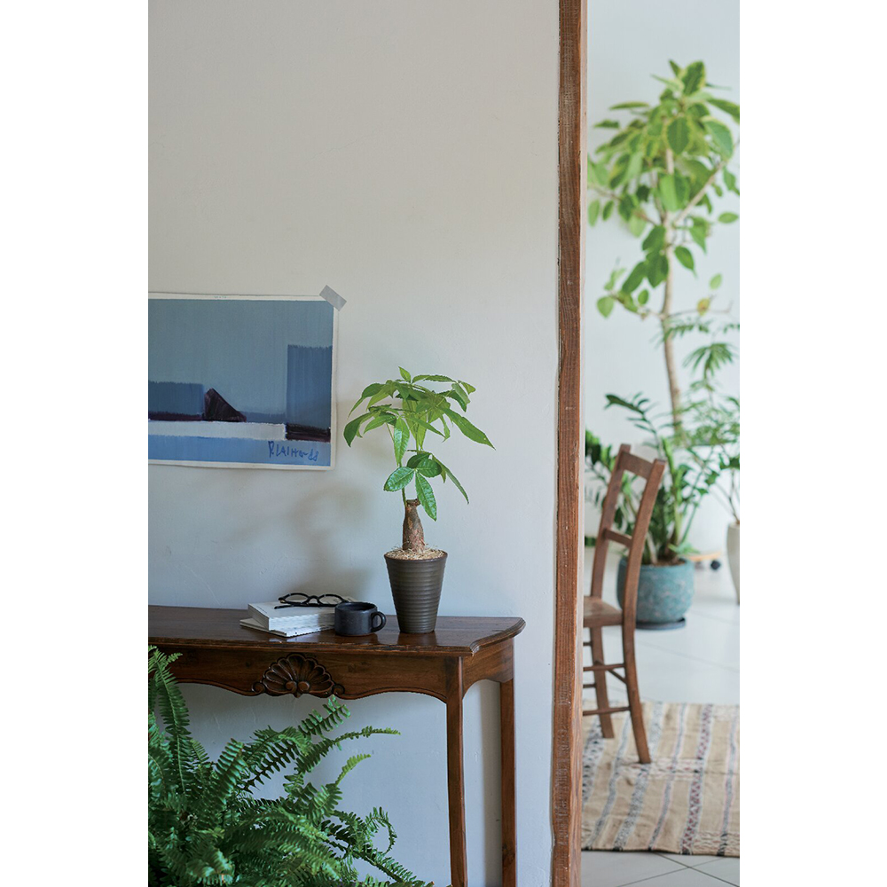 パキラの形状は一つひとつ異なります。また、器の色・形が変わる場合がございます。受け皿は付属しません。