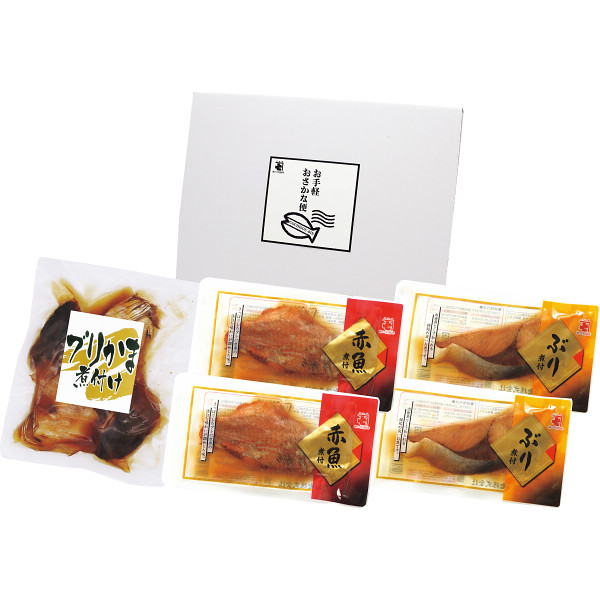 内容:ブリかま煮付け2切×1袋、赤魚煮付1切×2袋、ぶり煮付1切×2袋