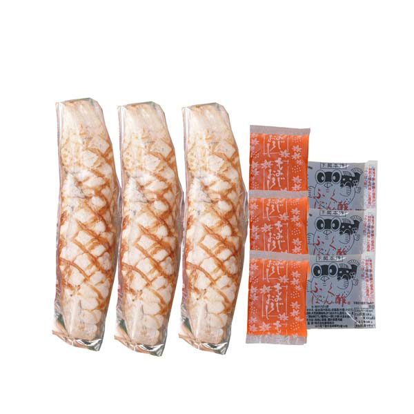 内容:真ふぐたたき3本(不定貫、計135g)、ふくポン酢10g×3、もみじおろし10g×3