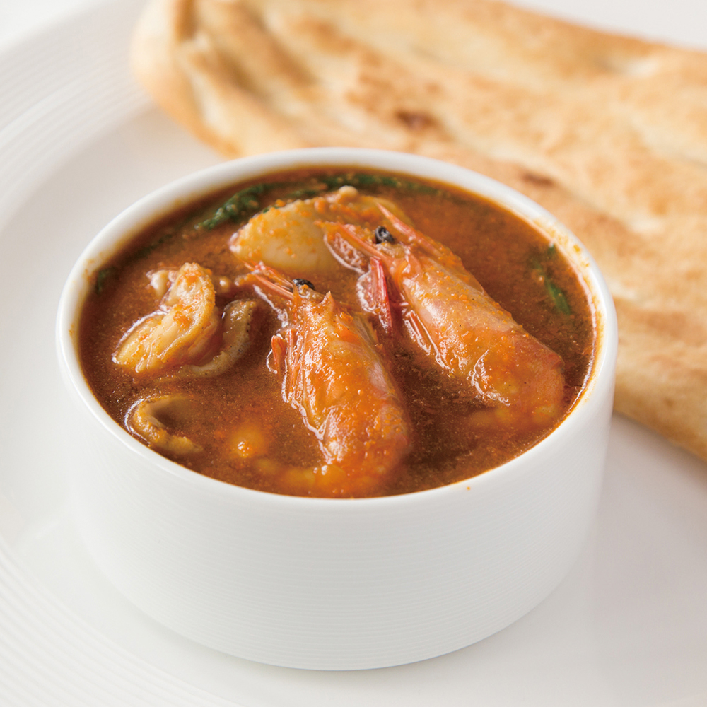 豚モツの旨みがたっぷりと とろけたスパイシーなカレーと シーフードカレーのセットです。
