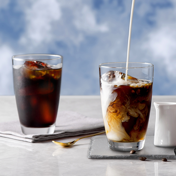 昭和9年創業の大阪「丸福珈琲店」のこだわりは、“濃厚でコク深い味わいだがあと味のすっきりとした珈琲”。まずはすっきりストレートで丸福珈琲店ならではの味わいを楽しんで、たまには牛乳をたっぷり入れて優しい甘みの濃厚なカフェオレを。こだわりを守り続ける丸福珈琲店がお届けする、オリジナルブレンドのアイスコーヒーと、牛乳で割って楽しむ甘みあるカフェオレベースのセットです。