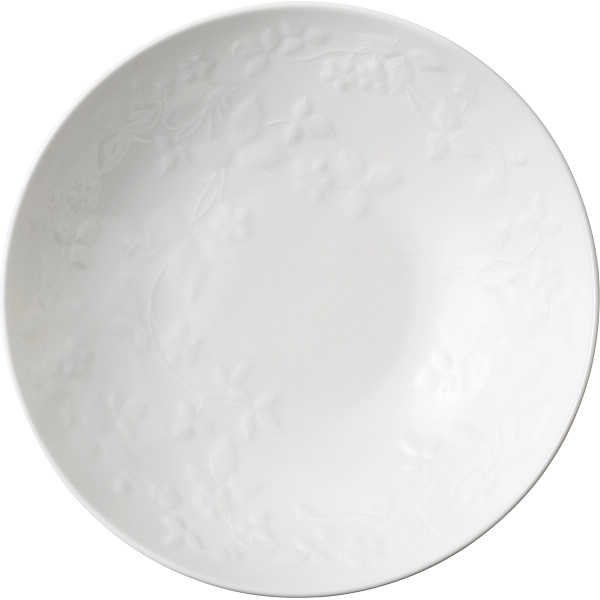 人気パターン「ワイルド ストロベリー」をエンボス模様で表現した「ワイルド ストロベリー ホワイト」。乳白色のボディーに、可憐な野いちごや愛らしい小花の模様が浮き上がるデザインは「ワイルド ストロベリー」らしい愛らしさと繊細さが漂います。使いやすい程よい深みのボールは、サラダ、フルーツ、煮物などの盛皿として活躍する一方、パスタやカレーなどの1人用のお皿としても使える汎用性の高さが魅力です。ご自宅用はもちろんのこと、ご結婚祝い、引き出物、新築お祝いなどのギフトにもおすすめです。