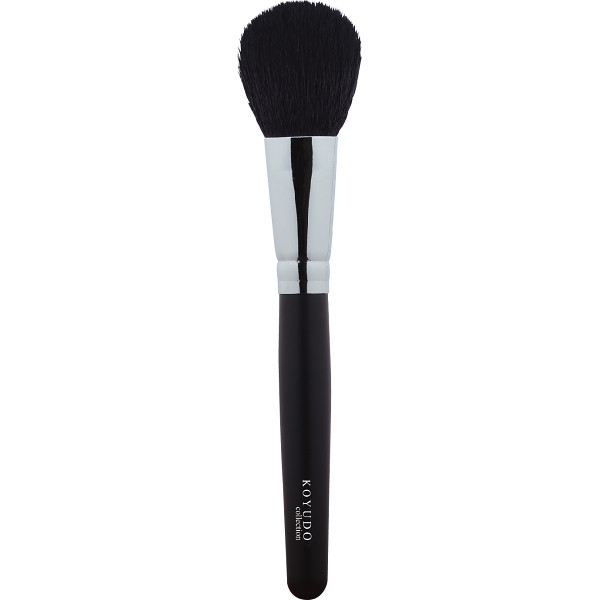 穂先には山羊毛を使用しています。ふんわりとした平な形状ですが毛量があり、筆をねかせて使うことで、しっかりとチークを入れることができます。チークブラシを初めて使う方には、使いやすいおススメの筆です。