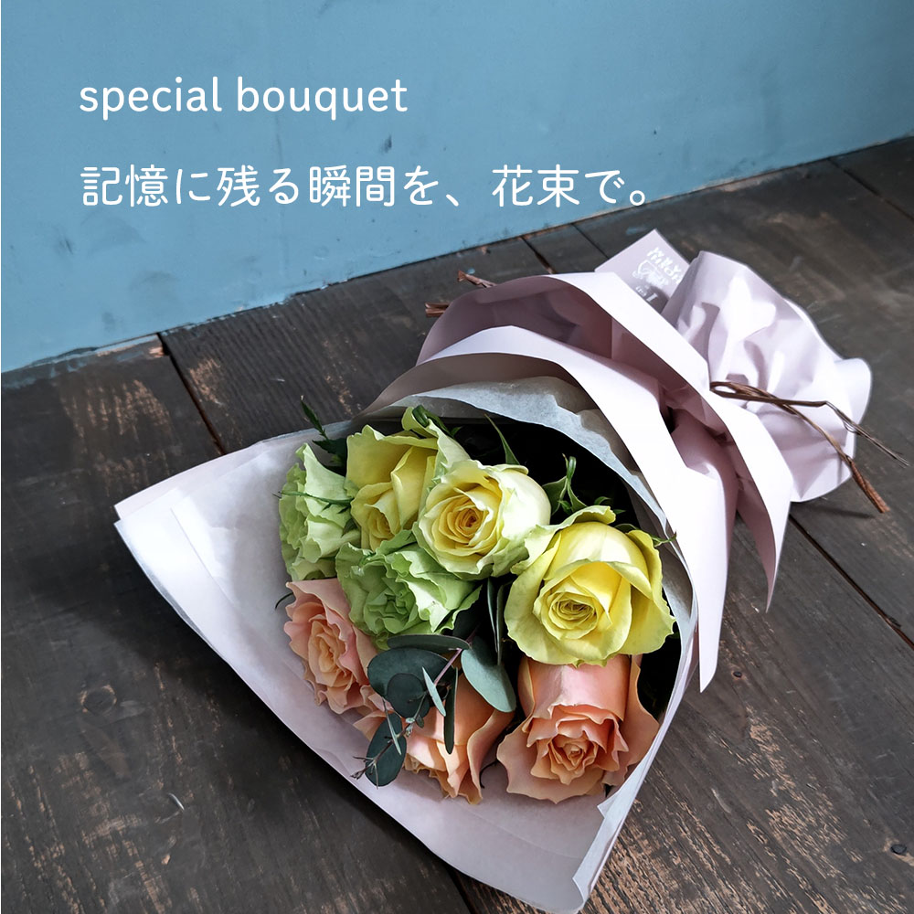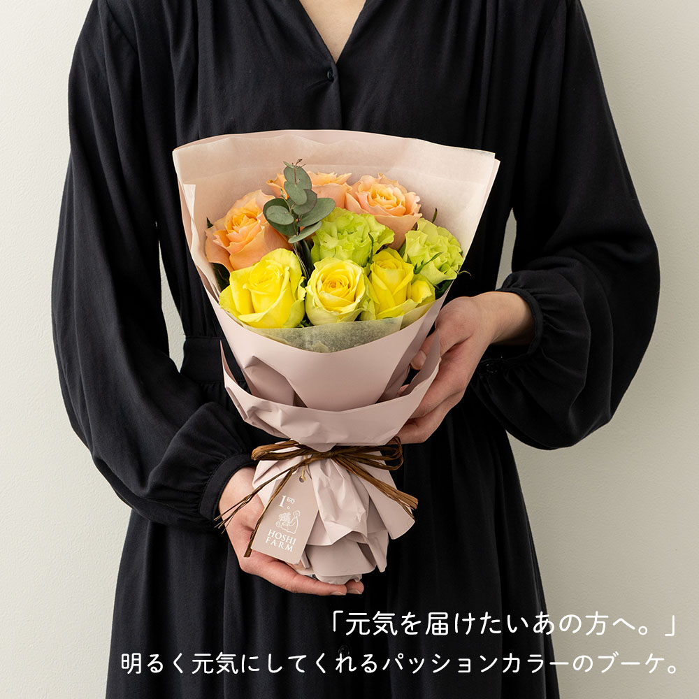 明るく元気にしてくれるパッションカラーのブーケは、「元気を届けたいあの方へ。」「いつも元気をもらってる人に。」贈っていただきたいブーケです。