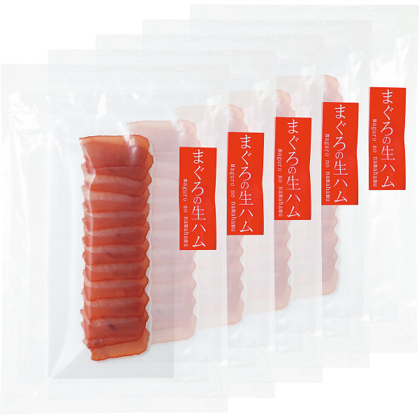 ■まぐろを生ハム仕立てに仕上げ食べやすいようにスライスしました。燻の薫りとしっとりとしたまぐろの生ハムを野菜と一緒にお召し上がりください。