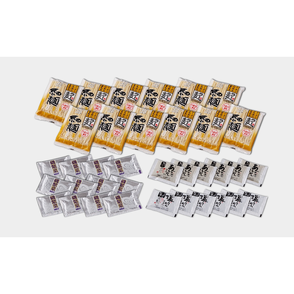 内容:ラー麦麺80g×12、あごだし醤油スープ40g×6、岩塩スープ36g×6、磯紫菜0.3g×12