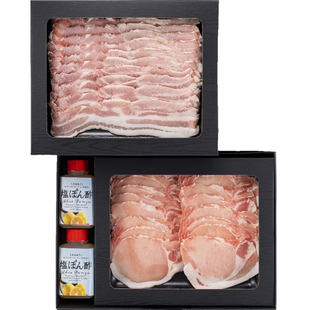 内容:塩ぽん酢360g(180g×2)、豚肉バラスライス280g、豚肉ローススライス280g