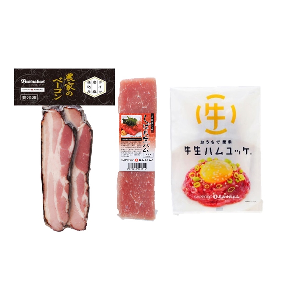 北海道 「札幌バルナバフーズ」 しばれ生ハム・牛生ハムユッケ&農家のベーコンステーキ