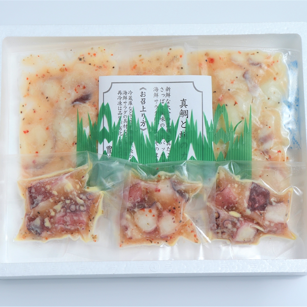 内容:真鯛カルパッチョ50g×3、たこカルパッチョ50g×3