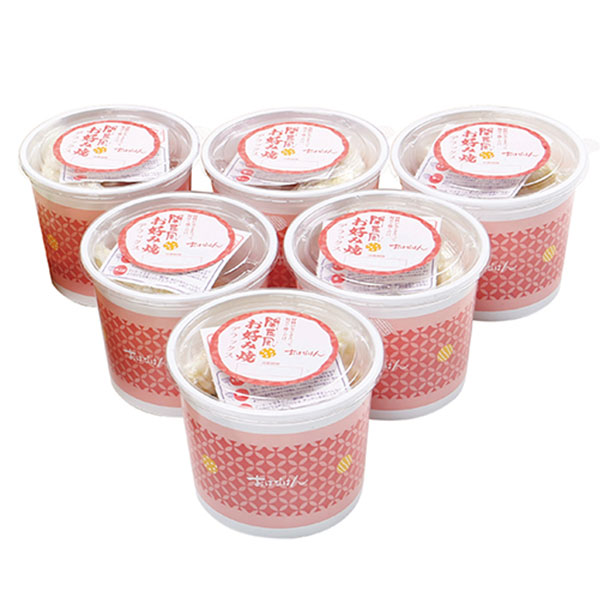 内容:6人前(1人前:カットキャベツ、卵、だし入練状お好み焼粉、ソース、エビ、イカ、豚肉、マヨネーズ、揚げ玉、紅しょうが、青のり、削り節粉)