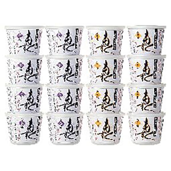 内容:醤油もずくスープ(もずく40g、スープ15g、七味唐辛子、乾燥ネギ)・味噌もずくスープ(もずく40g、スープ15g、七味唐辛子、乾燥ネギ)×各8