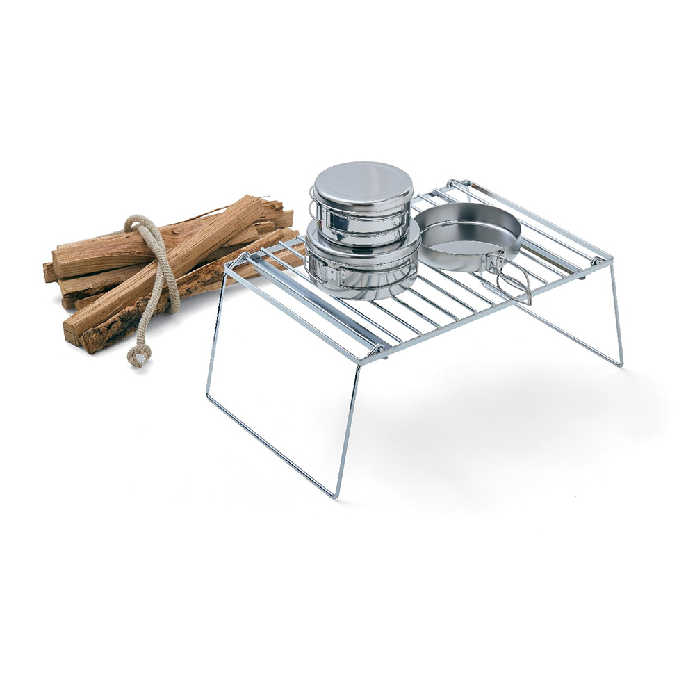 耐荷重約20Kg。シングルバーナーが2個置ける幅広サイズです。クッカースタンドだけでなく、荷物を置くスタンドとしても使用が可能です。