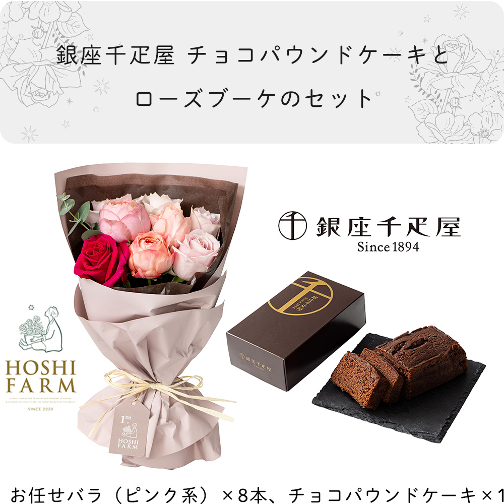 ホシファーム フリルブーケ スイート8本&銀座千疋屋 銀座チョコパウンドケーキ