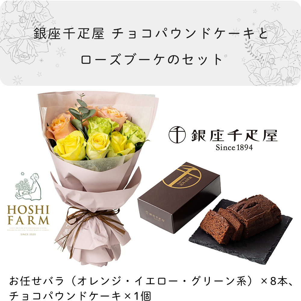 ホシファーム フリルブーケ パッション8本&銀座千疋屋 銀座チョコパウンドケーキ
