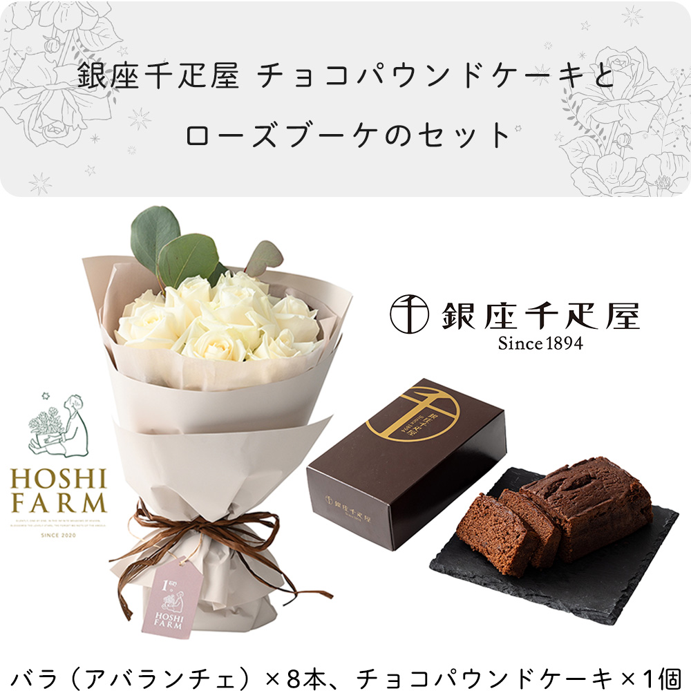 ホシファーム フリルブーケ ピュア8本&銀座千疋屋 銀座チョコパウンドケーキ