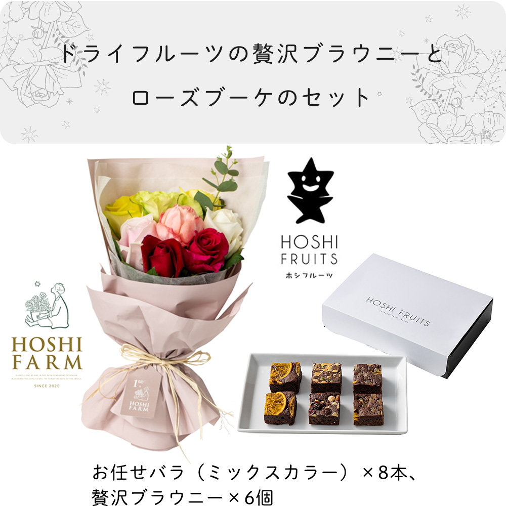 ホシファーム フリルブーケ カラフル8本&ホシフルーツ 贅沢ブラウニー 6個