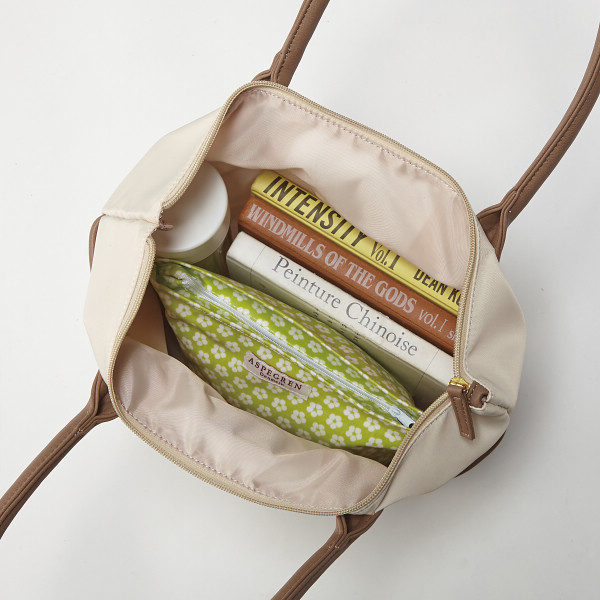 さわやかなトートでお出かけ シンプル×ナチュラルがキーワードのイルムスのトートバッグです。バイカラーのラインデザインでさわやかな印象を演出しています。