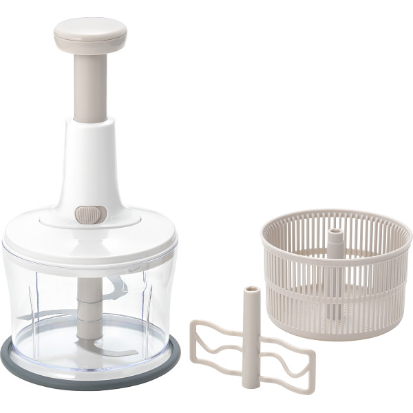 押すだけで時短クッキング!上から押すだけで簡単にみじん切りができます。付属の部品を使用すれば、水切りや泡立てとしても使えます。シャキシャキサラダや生クリーム、アイスクリームづくり等に便利です。