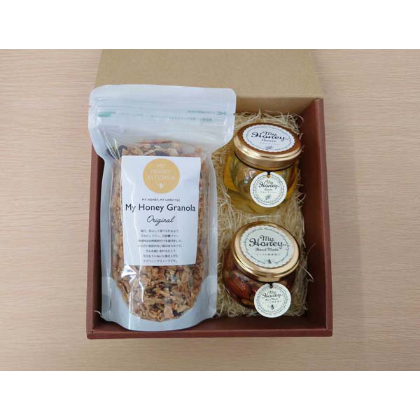 内容:マイハニーグラノーラ200g×1、ナッツの蜂蜜漬け90g×1、アカシアはちみつ90g×1