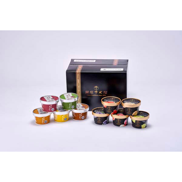 内容:銀座千疋屋プレミアムアイス(カスタードバニラ・とちおとめ・マスカット・ピーチ・ブルーベリーチーズ各1)、花園万頭ぬれ甘なつとアイス(バニラ・抹茶・小倉・黒糖・きなこ黒蜜各1)