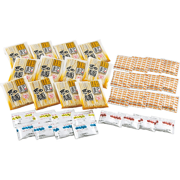 内容:ラー麦麺80g×12(乾麺)、豚骨スープ35g×4、醤油スープ35g×4、味噌スープ35g×4、ラーメンふりかけ3g×12