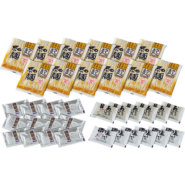 内容:乾麺80g×12、あごだし醤油スープ40g×6、岩塩スープ36g×6、磯紫菜0.3g×12