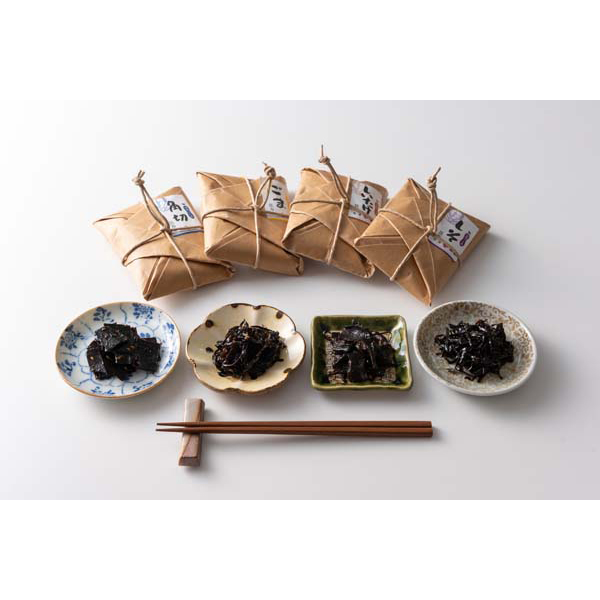 内容:角切昆布・しそ昆布・ごま昆布・しいたけ昆布 各160g