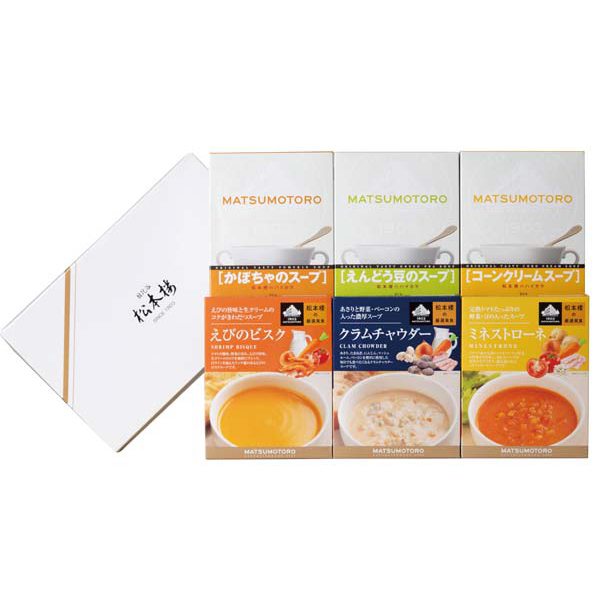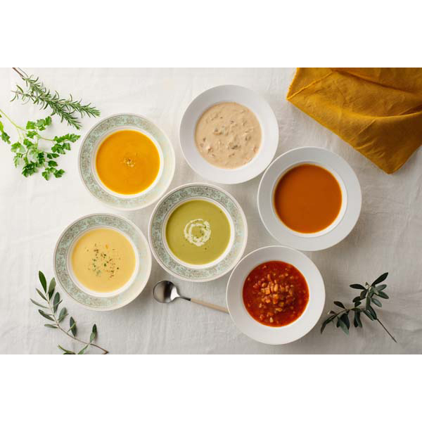 内容:ハイカラコーンクリームスープ160g・ハイカラえんどう豆のスープ160g・ハイカラかぼちゃのスープ160g・厳選美食えびのビスク160g・厳選美食クラムチャウダー150g・厳選美食ミネストローネ150g×各1個