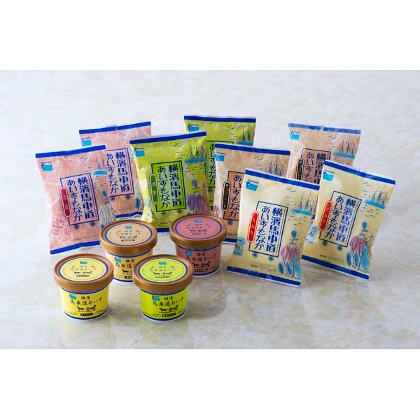 内容:横濱馬車道あいすもなか65ml(ミルク・抹茶・小豆・チョコレート×各2個)、横濱馬車道あいす110ml(カスタード・渋皮栗・みるく大納言・緑茶みるく×各1個)
