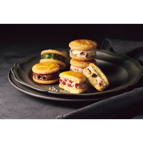 酸味のあるドライフルーツたちがほどよくマッチする、発酵バターを使用した濃厚なバタークリームを、ちょっぴり塩気のあるサクサクなクッキーでサンドしました。バタークリームの濃厚さ、ドライフルーツの量や大きさ、クッキーの食感や厚み、塩気など、パティシエのこだわりを詰め込んだ自慢のレシピで作るバターサンドです。