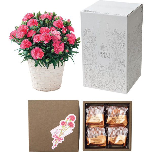 4/30まで申し込み可 【母の日専用】ホシファーム カーネーション鉢植え「ホットハート」5号&焦がしキャラメルがしみ込んだバーム