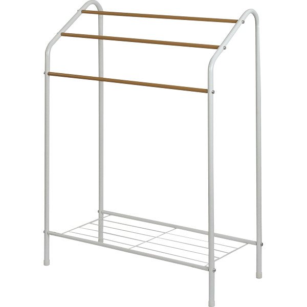 便利な棚付きのタオルスタンドです。タオル等を干した後、下棚にたたんで収納できます。