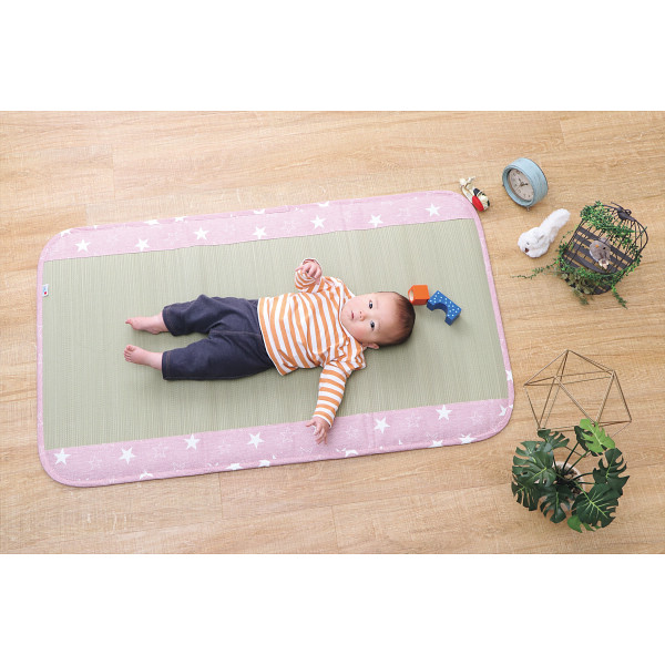 表地に国産のい草を使用していますので寝苦しい夜の改善に一役買います。接地面に熱がこもりにくいため、未使用時より快適に睡眠できます。70×120サイズで中材に国産型固わた15mm使用。ベビーベッドの中に入れても使用できます。
