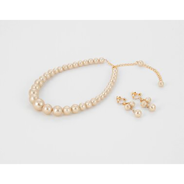 コットンパールネックレス・イヤリングセット(シャンパン)